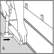 Ако сте избрали системата за полагане Ultraloc ще се нуждаете от трион и помощно дървено трупче. При системата Combiloc се нуждаете единствено от трион. При полагане на първия ред дъски оставете 8-10 мм пролука за разширяване.