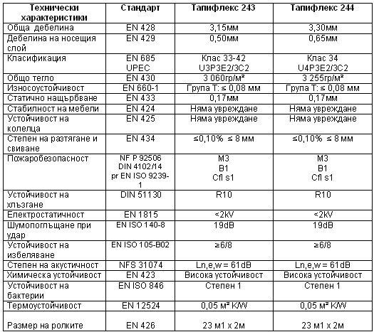 Tapiflex 243/244 се предлага а рула с ширина 2м. Цветовата гама е от 28 цвята.